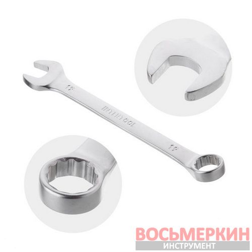 Рожковая часть ключа позволяет получить удобный доступ к креплению в труднодоступных местах. Накидная часть с двенадцатью гранями увеличивает площадь прилегания поверхностей и снижает риск срыва граней гаек и болтов. Удобная форма и изгиб рукоятки ключа обеспечивают оптимальные условия для приложения усилия, благодаря чему вы с легкостью закрутите, открутите крепежный элемент.