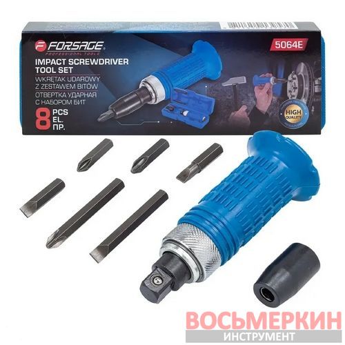 Отвертка ударная с набором бит адаптером и защитной ручкой 8 предметов 1/2 F-5064E Forsage