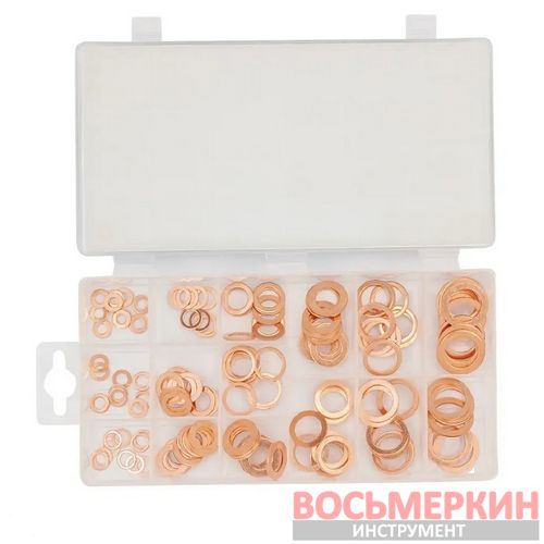 Набор медных шайб Forsage F-06871 включает 150 плоских шайб различных размеров по 10 шт каждого. Шайбы увеличивают площадь прижима поверхности и предотвращают самопроизвольное выкручивание крепежных деталей.