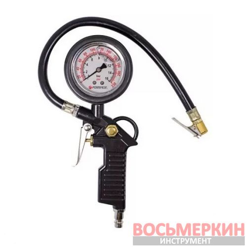 Пистолет для подкачки шин с аналоговым манометром и шлангом 0-16bar манометр заполнен глицирином в блистере F-2370G Forsage