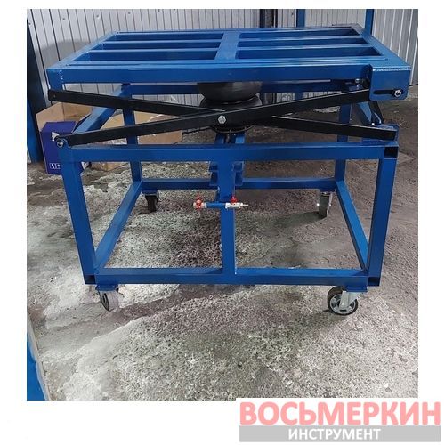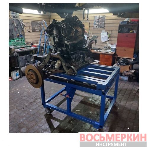 Стол передвижной с подъемным механизмом предназначен для снятия — установки двигателя автомобиля с подрамником и без него для дальнейшей транспортировки в рабочую зону. Привод подъема стола пневматический. Жёсткость от опрокидывания верхнего стола обеспечивают 3 пары направляющих (ножниц)