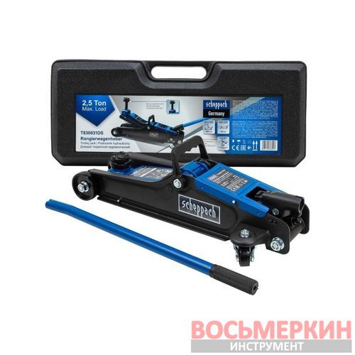 Домкрат подкатной гидравлический 2,5т усиленный низкопрофильный в кейсе SCHEPPACH SCH-T830031 - это профессиональный инструмент, предназначенный для быстрого подъема автомобилей со сверхнизким клиренсом и массой до 2,5 тонн. Он имеет низкопрофильную конструкцию, которая позволяет работать с автомобилями, имеющими небольшой зазор между днищем и дорогой.