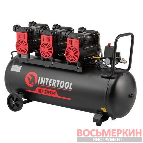 Компрессор 100 л 3х1.5 кВт 220 В безмасляный 6 цилиндров PT-0039 Intertool