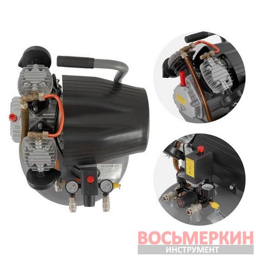 Для регулировки давления в ресивере и на выходе установлены два манометра с редуктором, что позволяет регулировать и постоянно поддерживать выходное давление необходимое вашему инструменту или оборудованию.