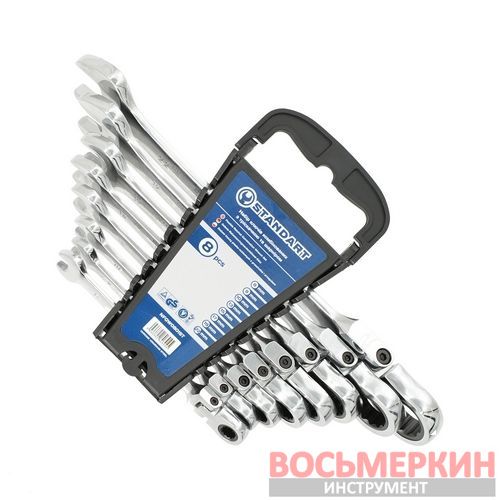 Набор ключей комбинированных с трещоткой и шарниром 8 единиц на холдере NFGW0801ST Standart