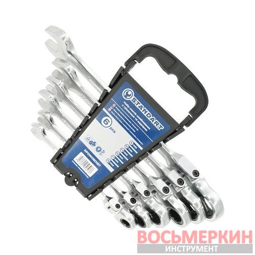 Набор комбинированных ключей СТАНДАРТ NFGW0601ST предназначен для комфортного и эффективного выполнения ремонтных работ. Каждый ключ оснащен встроенной трещоткой с плавным ходом и шарнирной головкой, что позволяет легко работать даже в труднодоступных местах.